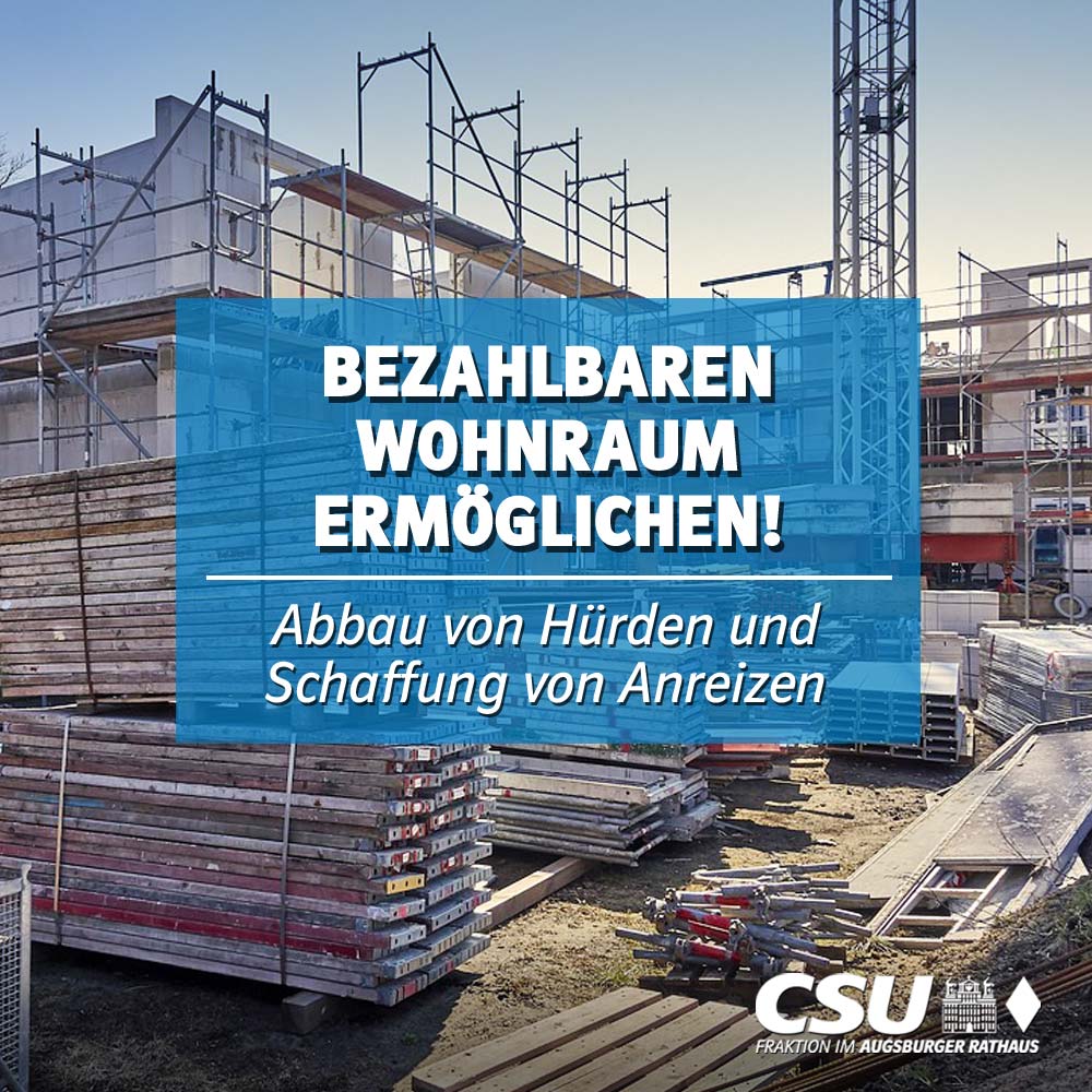 CSU-Fraktion begrüßt Beschlüsse für mehr Wohnraum in Augsburg