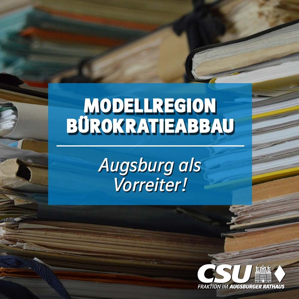 Die CSU-Stadtratsfraktion setzt sich dafür ein, dass sich die Stadt Augsburg als Modellregion für Bürokratieabbau bewirbt. Hintergrund ist ein angekündigtes Gesetzesvorhaben der CSU-Landtagsfraktion, das Kommunen mehr Handlungsspielräume und vereinfachte Verfahren ermöglichen soll.
