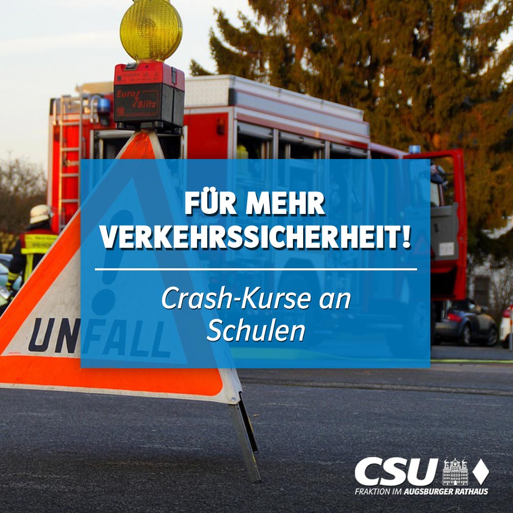Die CSU-Stadtratsfraktion setzt sich für mehr Verkehrssicherheit ein und hat dazu einen Antrag in den Stadtrat eingebracht. Ziel ist es, das erfolgreiche Präventionsprogramm „Crash-Kurs“ nach Augsburg zu holen.