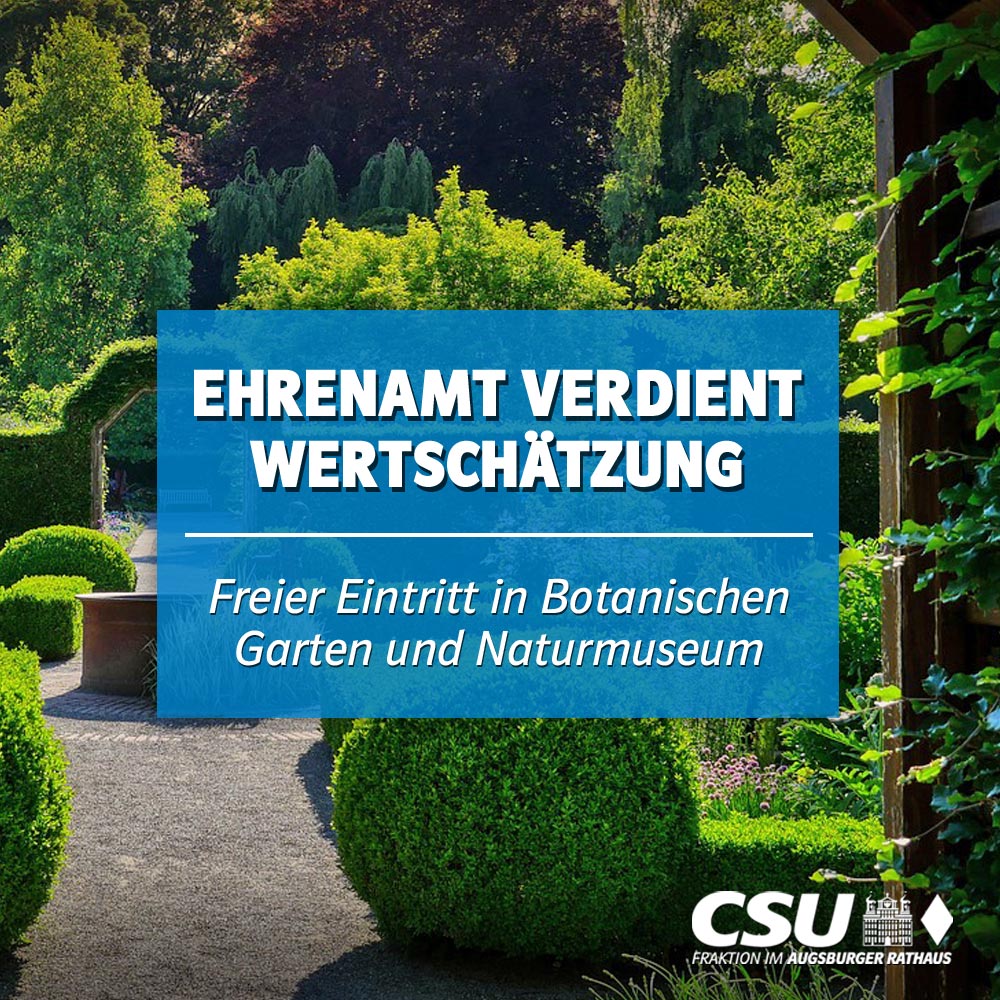 - Freier Eintritt während der bayerischen Weihnachts- und Osterferien in den Botanischen Garten für Inhaberinnen und Inhaber der Ehrenamtskarte – inklusive einer Begleitperson sowie Kindern bis 18 Jahre.