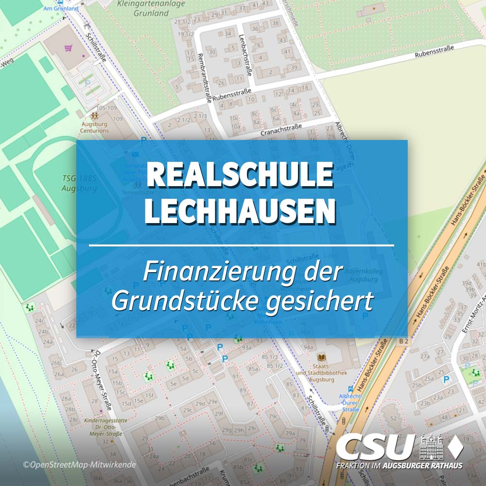 Mit der gesicherten Grundstücksfinanzierung starten nun die nächsten Planungsschritte. Ziel bleibt eine schnelle Umsetzung der Realschule Lechhausen für die Familien sowie die Schülerinnen und Schüler im Augsburger Osten.