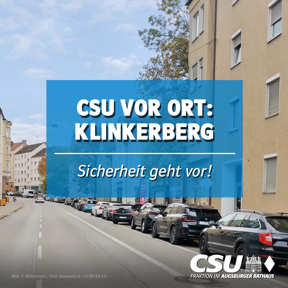 In letzter Zeit haben sich am Klinkerberg in Augsburg vermehrt Verkehrsunfälle ereignet, teils mit schweren Folgen. Die CSU-Stadtratsfraktion macht sich daher für Maßnahmen stark, die die Sicherheit aller Verkehrsteilnehmer erhöhen sollen.