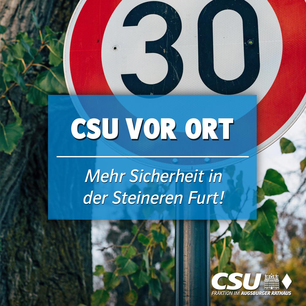 Die CSU-Stadtratsfraktion Augsburg setzt sich für mehr Verkehrssicherheit im Bereich der Steinernen Furt in Lechhausen ein. Da sich der Straßenabschnitt in den vergangenen Jahren stark verändert hat und mit der Kita Steinerne Furt eine sensible Einrichtung hinzugekommen ist, beantragt die Fraktion die Prüfung einer Temporeduzierung auf 30 km/h ab Hausnummer 35.